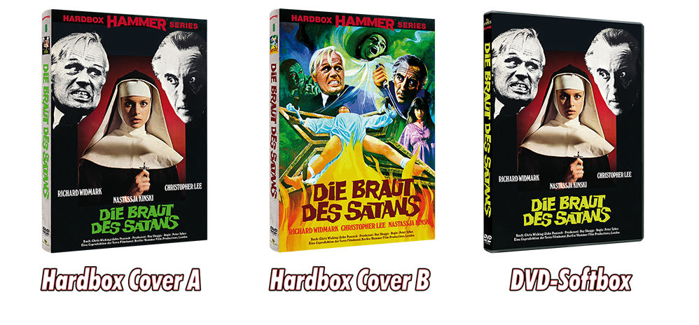 Da DIE BRAUT DES SATANS in Deutschland nie offiziell eine DVD-Auswertung erfahren hat, reaktivieren wir – einmalig, mehrmalig, wer weiß das bei Anolis schon, wir am allerwenigsten – die Hammer Hardbox-Reihe. Und zusätzlich zu den 2 geheimnisvoll limitierten Hardbox-Varianten, gibt es diesmal sogar eine Softbox-Variante.