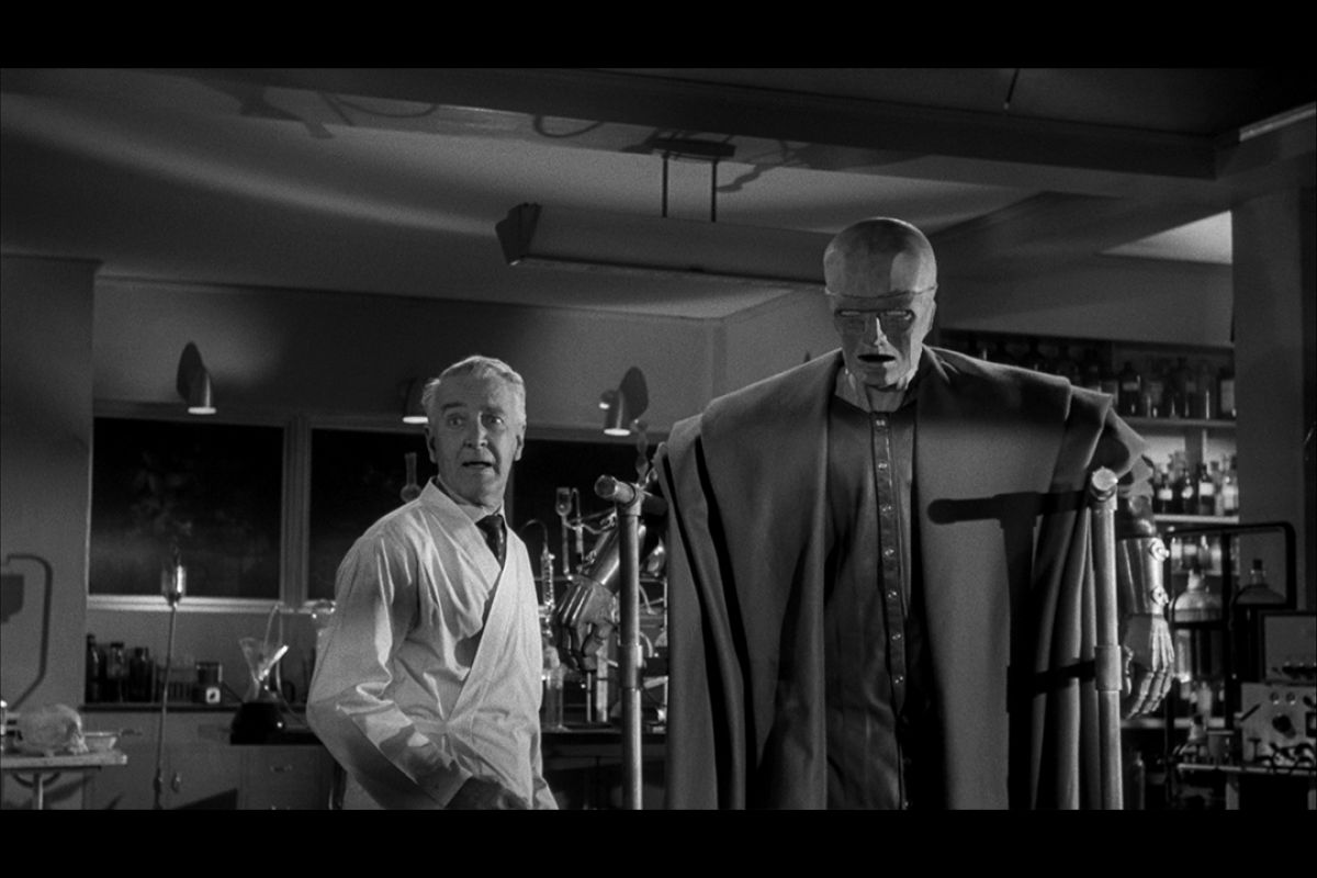 Eine Mischung aus Golem-Legende, FRANKENSTEIN und DONOVANS HIRN und ganz klar ein Vorläufer von ROBOCOP: Ein Hirnspezialist setzt das Gehirn seines nach Verleihung des Friedensnobelpreises tödlich verunglückten genialen Sohnes, zum Wohle der Menschheit, wie er meint, in einen hünenhaften Roboter ein. Zunächst hat es den Anschein, als funktioniere der Maschinenmensch problemlos. Doch nachdem die Seele des Forschers von ihrem angestammten Körper getrennt ist und er erkennen muss, wie sein eigener Bruder seine Witwe anbaggert, brennen bei dem Koloss alle Sicherungen durch. Er sieht rot, läuft Amok und dringt in den Glaspalast der UNO ein. Dort wütet er wie der Elefant im Porzellanladen.