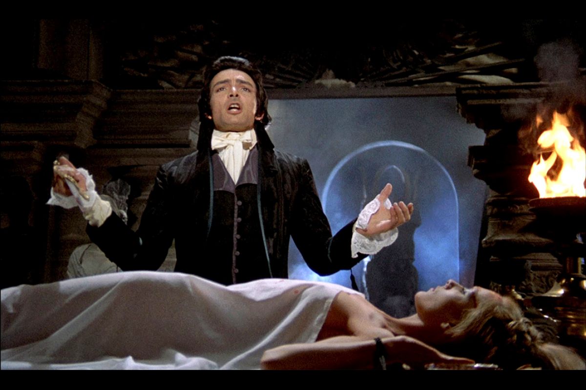 Auf eine von zwei bildschönen Zwillingsschwestern, Frieda, hat er ein Auge geworfen und macht sie zu seinesgleichen, zur Blutsaugerin. Die andere, Maria, wird von den Fanatikern mit der bösen Schwester verwechselt und läuft Gefahr, auf dem Scheiterhaufen zu enden.