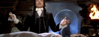 Peter Cushing, der Star des britischen Horrorfilms, als Anführer einer fanatisch-bigotten Bruderschaft , die es sich zum Ziel gesetzt hat, die Exzesse angeblicher Hexen und Magier zu stoppen, besonders die des Grafen von Karnstein, eines Nachfahren der berüchtigten Mircalla Karnstein. Wie Dracula praktizierte auch dieser skrupellose Adlige Schwarze Magie und ließ sich von seiner Ahnin zum Vampirismus bekehren.