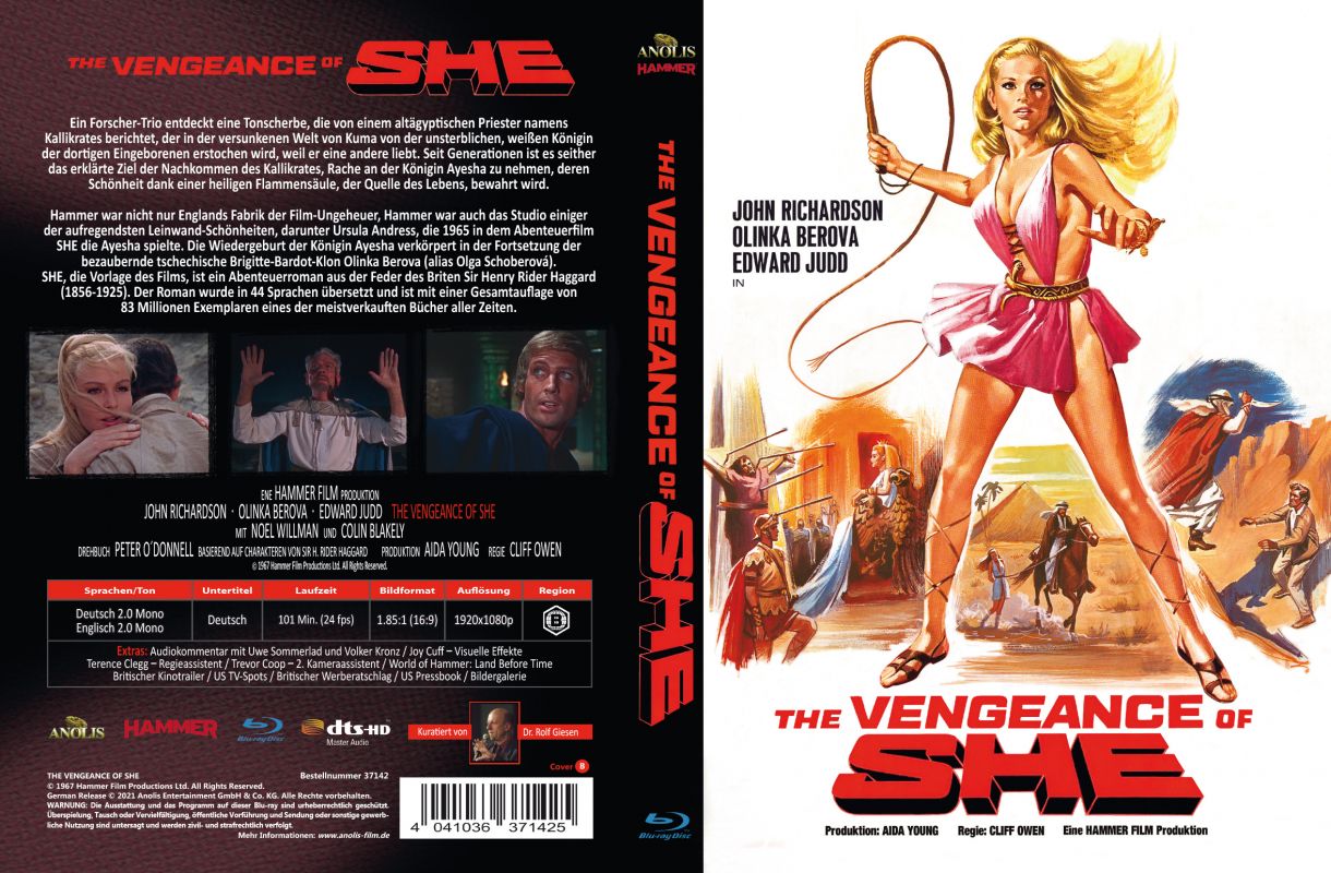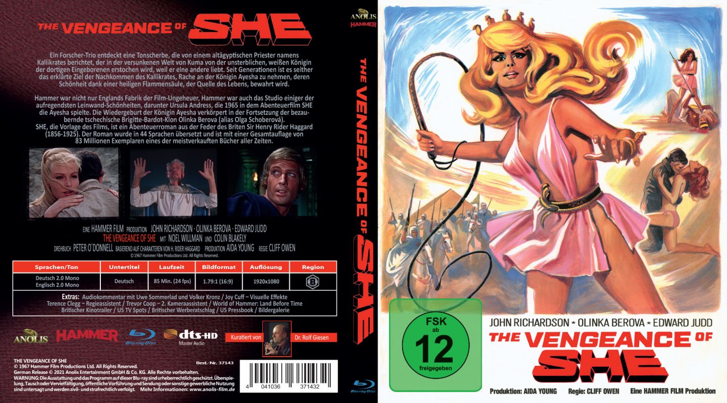 Hammer war nicht nur Englands Fabrik der Film-Ungeheuer, Hammer war auch das Studio einiger der aufregendsten Leinwand-Schönheiten, darunter Ursula Andress, die 1965 in dem Abenteuerfilm SHE die Ayesha spielte. Die Wiedergeburt der Königin Ayesha verkörpert in der Fortsetzung der bezaubernde tschechische Brigitte-Bardot-Klon Olinka Berova (alias Olga Schoberová).