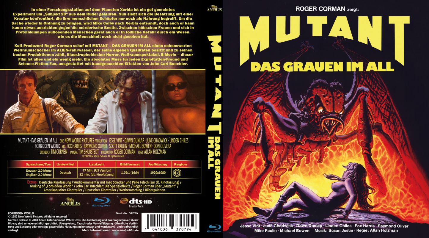 Deutsche Kinofassung / Audiokommentar mit Ingo Strecker und Pelle Felsch (zur dt. Kinofassung) / Director‘s Cut (SD) / Making Of „Forbidden World“ / John Carl Buechler: Die Spezialeffekte / Roger Corman über „Mutant“ / Amerikanischer Kinotrailer / Deutscher Kinotrailer / Werberatschlag / Bildergalerien / 20-seitiges Booklet geschrieben von Ingo Strecker