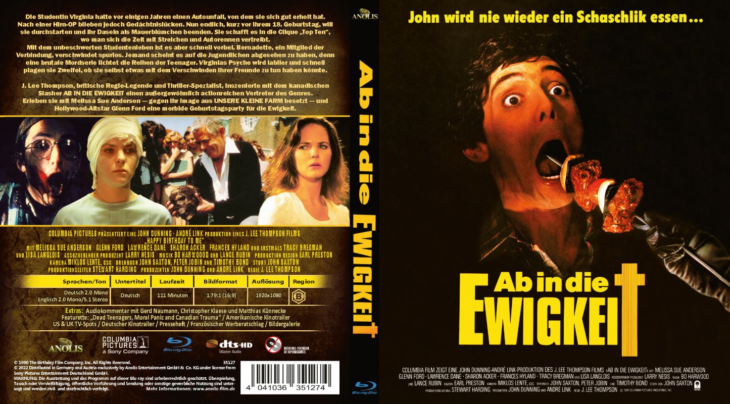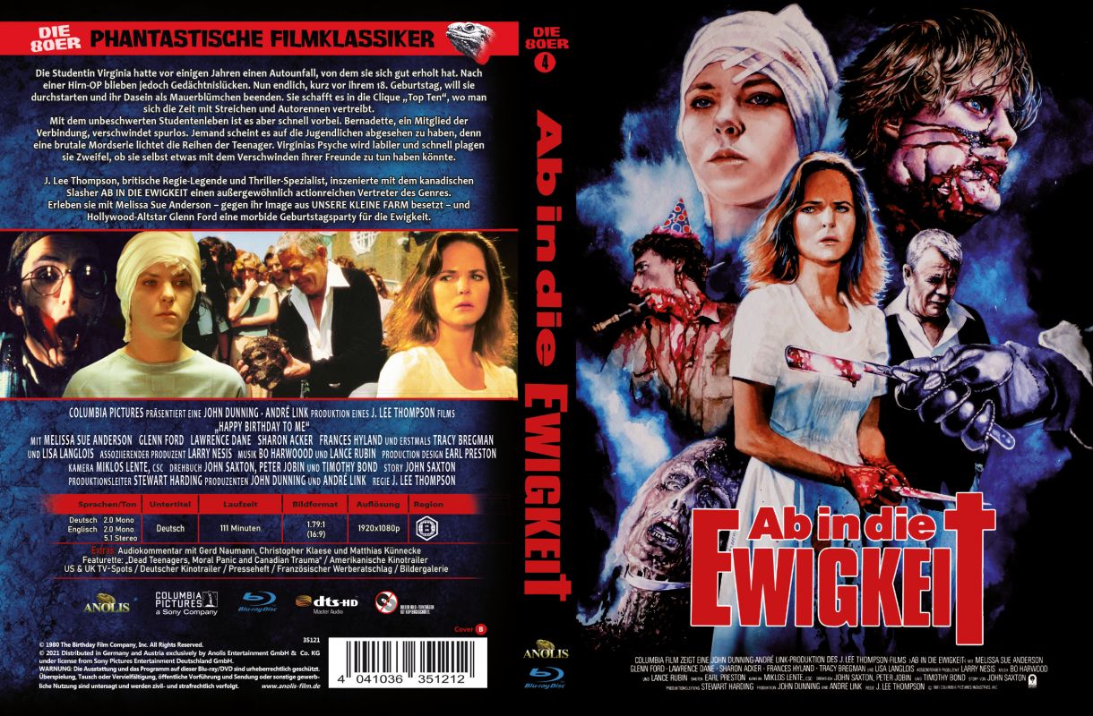 J. Lee Thompson, britische Regie-Legende und Thriller-Spezialist, inszenierte mit dem kanadischen Slasher AB IN DIE EWIGKEIT einen außergewöhnlich actionreichen Vertreter des Genres. Erleben sie mit Melissa Sue Anderson - gegen ihr Image aus UNSERE KLEINE FARM besetzt - und Hollywood-Altstar Glenn Ford eine morbide Geburtstagsparty für die Ewigkeit.
