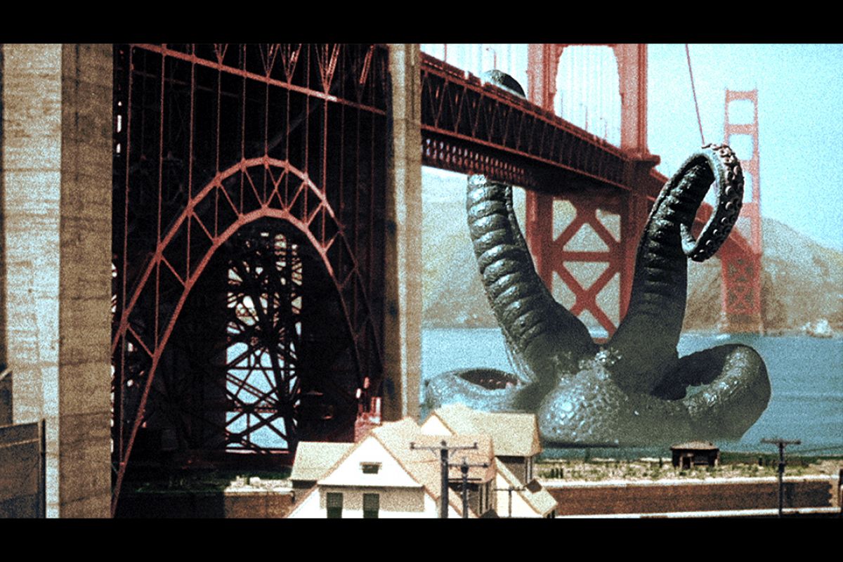 Die Zerstörungskraft der von den Amerikanern am 1. März 1954 getesteten Wasserstoffbombe lag beim Tausendfachen der Atombombe von Hiroshima. Die Folge: ein durch H-Bomben-Test aus den tiefsten Tiefen des Pazifischen Ozeans geschreckter, radioaktiv verseuchter Oktopus-Gigant wendet sich gegen die Urheber einer möglichen Apokalypse und greift San Francisco an. Seine Zerstörungswut ist verheerend. Mächtig tauchen seine Tentakel aus der Bucht von San Francisco auf. So gewaltig ist das Ungeheuer, dass es das Wahrzeichen der Stadt, die Golden Gate Bridge, zum Bersten bringt. Allein die teuflische Urgewalt, die den Leviathan hervorgebracht hat, ist in der Lage, ihn auch wieder zu vernichten.